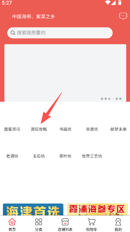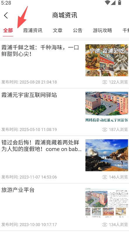 1、提供分类浏览功能,进入首页,选择游玩攻略等分类查看对应霞浦相关资讯内容。