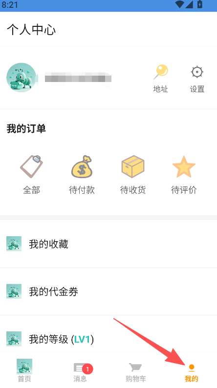 1、提供订单管理功能,进入我的页面,查看全部待付款等不同状态的订单内容。