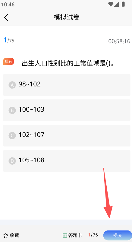 3、在模拟试卷页完成题目作答,点击提交完成答题操作。