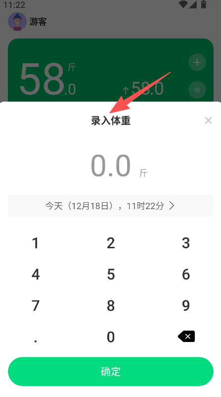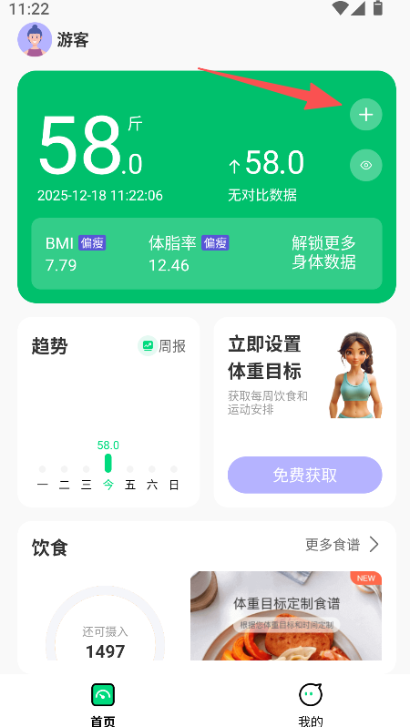 1、打开首页,点击体重区域的加号按钮,录入体重数据。