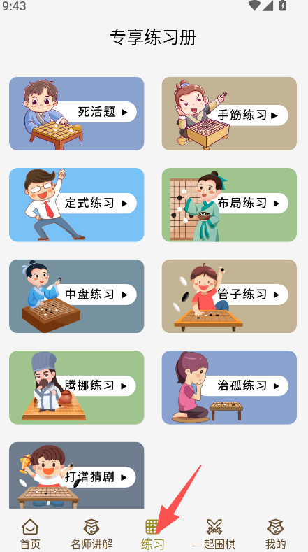 3、配备专享练习册,覆盖死活题、手筋等多种专项训练,让知识学习与实操练习同步推进。