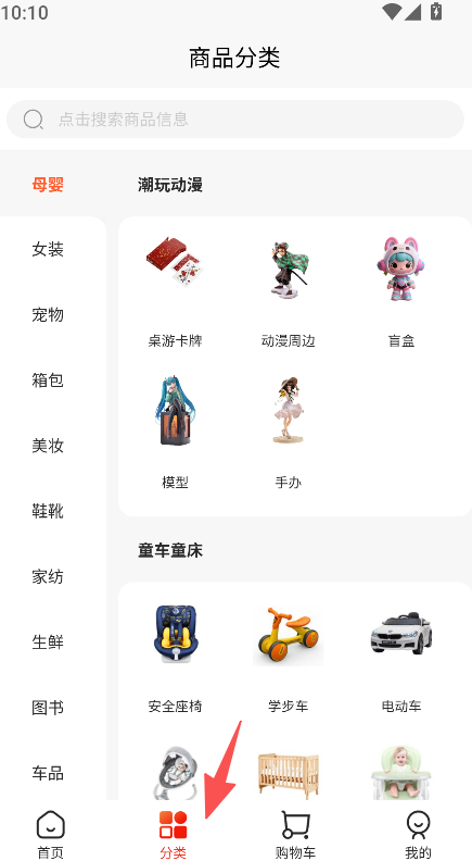 1、进入软件首页,点击分类查看各品类商品的细分内容。