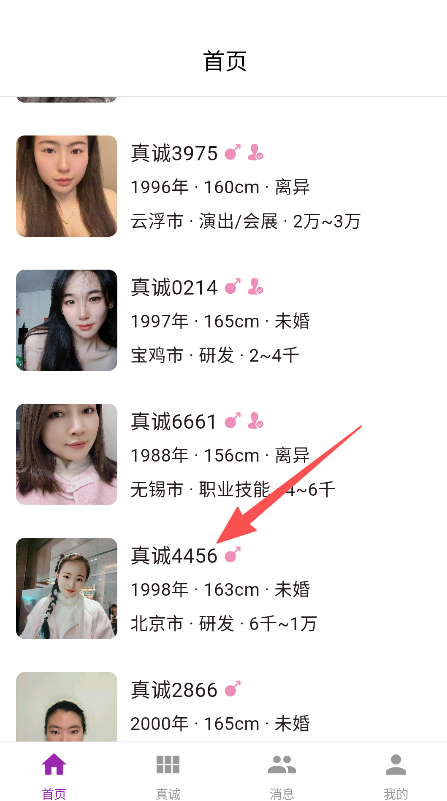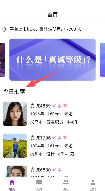 1、提供用户推荐功能,首页展示用户列表,包含年龄地区等信息,支持查看不同分类下的用户。