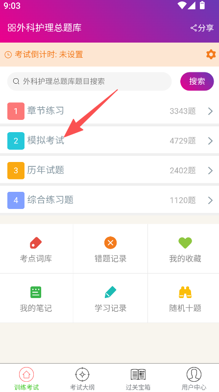 2、模拟考试按知识类目细分,可精准选择专项内容练习,提升外科护理备考的专项突破效率。