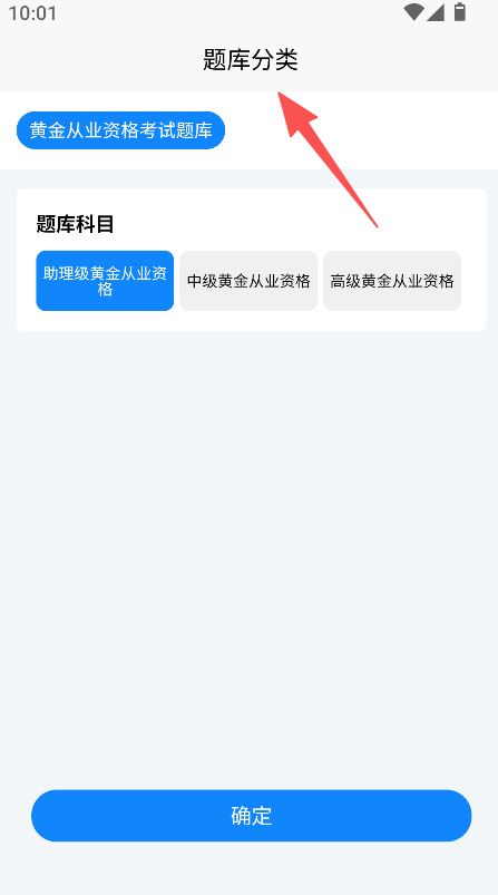 1、打开软件进入题库分类、选择对应黄金从业资格科目并点击确定。