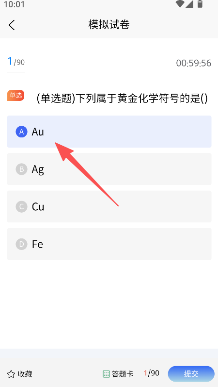 3、在模拟试卷页面、完成题目作答推进备考练习进程。