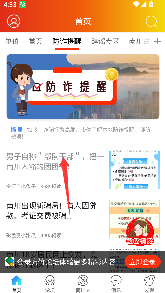 1、点击防诈提醒,就像在方竹楼下的社区公告墙前驻足,一整面花花绿绿的警示案例和口诀顺口溜正随风轻摆,引人注目。