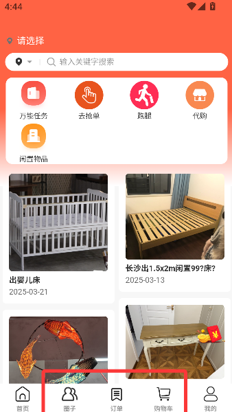 2、中间的万能任务、跑腿、代购板块,活像小区的江湖救急杂货铺,各种“求帮取快递”“代买酱油”的趣事在此挂牌招领。