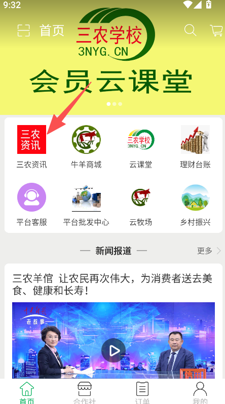 1、打开软件进入首页、选择三农资讯板块。