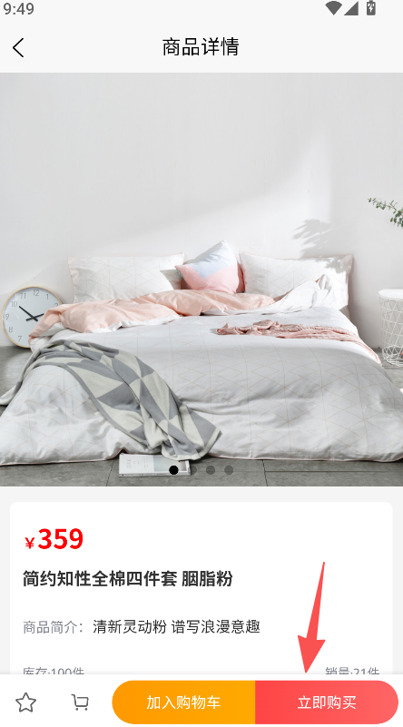 3、配备加入购物车、立即购买功能,提供便捷的商品选购与下单渠道,适配电商购物的核心需求。
