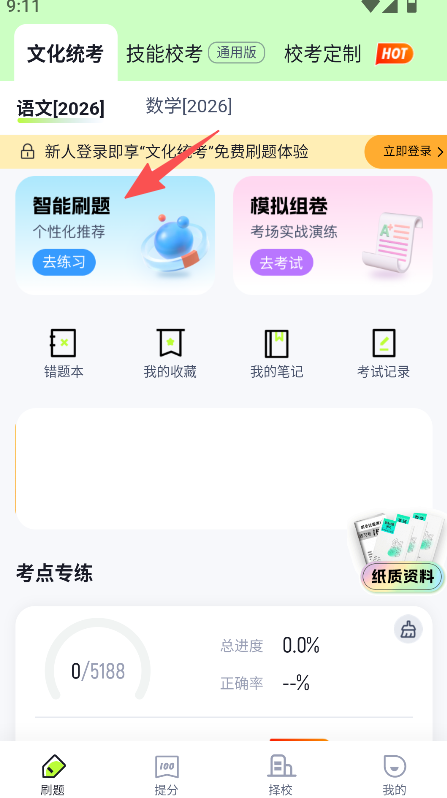 1、覆盖高职单招文化统考内容,设智能刷题、模拟组卷功能,智能刷题提供个性化练习推荐,贴合单招备考的核心需求。