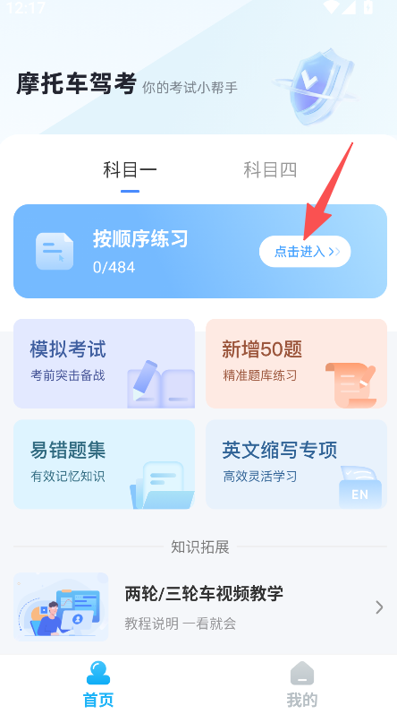 1、打开《摩托车驾考通关》,选择按顺序练习。