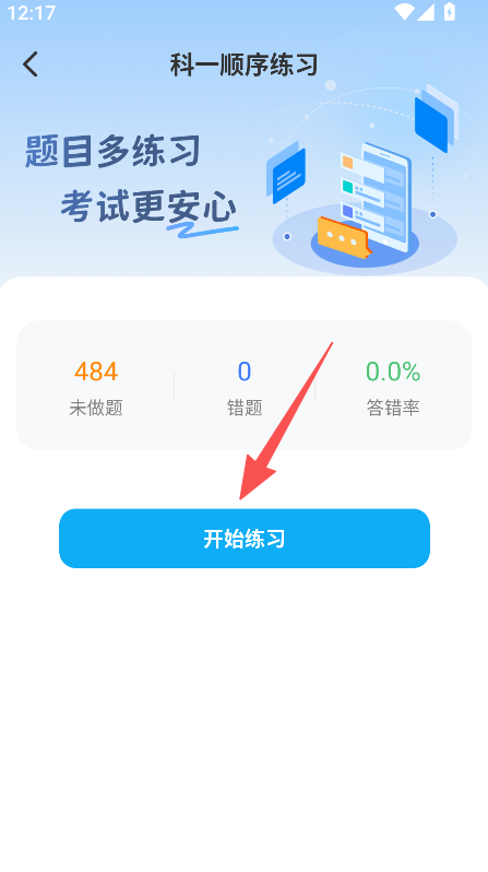 2、在科一顺序练习页面,点击开始练习。