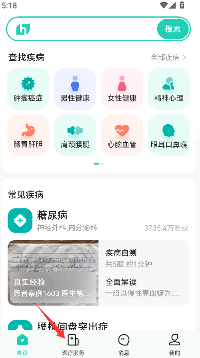 1、在主界面醒目位置找到并点击“医疗服务”图标或文字入口。