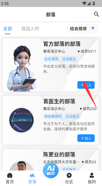 2、根据个人情况或关注点,点击选择希望加入的特定部落。