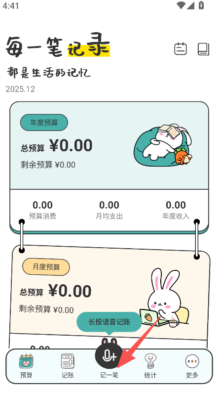 3、支持长按语音记账,搭配记一笔操作,简化账目录入流程,提升记账的便捷性。
