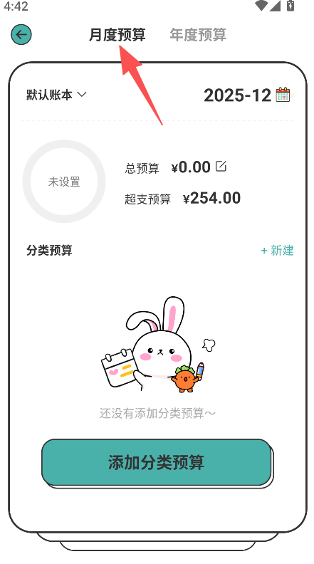 2、设年度月度双预算模块,可查看预算消费月均支出等数据,助力全面管理资金规划。