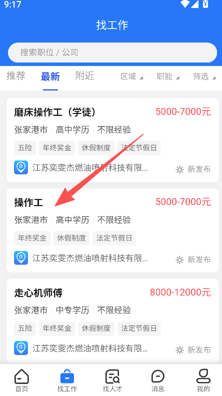 1、可按最新、附近等维度筛选职位,快速定位符合地域或时效需求的岗位资源。