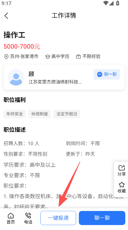 3、在详情页选择一键投递、或点击聊一聊与招聘方进行沟通。