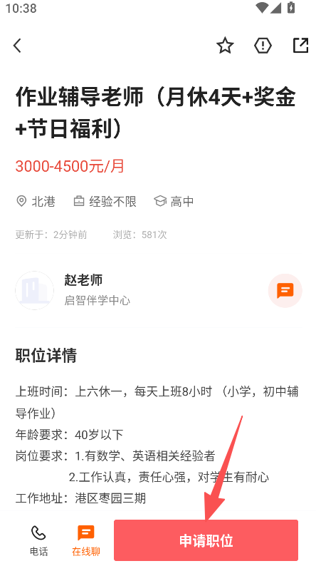 3、职位申请流程简洁,进入详情页点击按钮即可申请,降低求职操作的复杂度。