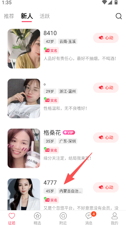 2、展示用户的年龄、地域、征婚信息等资料,搭配实名认证标识,提升婚恋交友的信息透明度。
