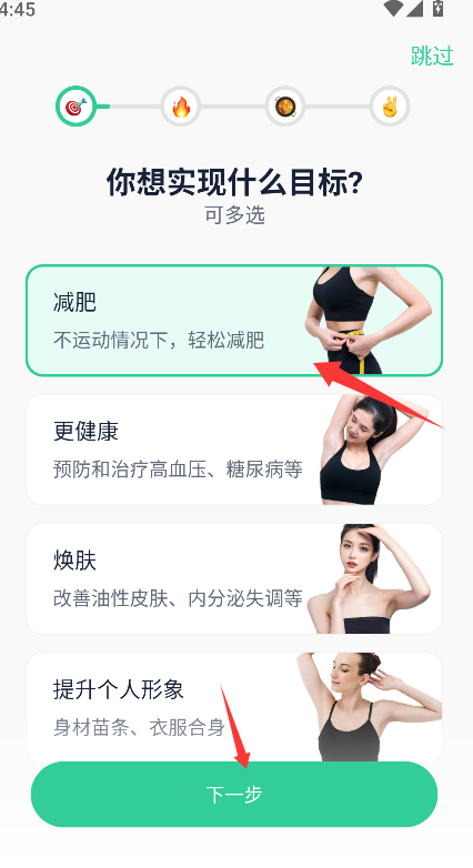 1、根据引导填写或选择期望的体重、周期等具体目标参数,并确认保存。