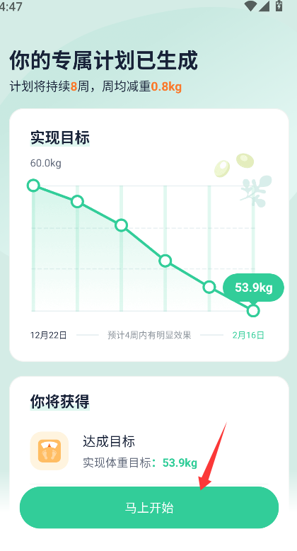 2、设置完成后,系统将基于所设定的目标,自动创建一份包含每日饮食建议。