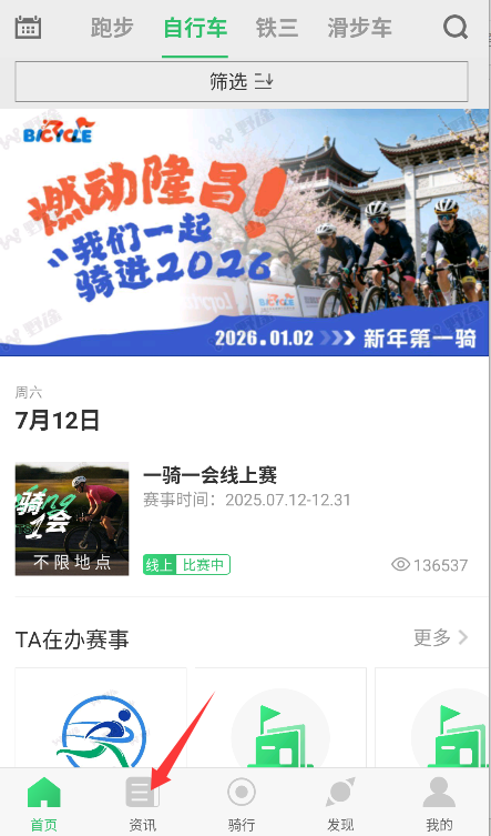 2、点击后将进入资讯列表页面,该页面以时间顺序或分类形式集中展示多条国内外骑行赛事及相关活动的图文信息。