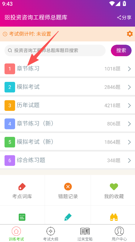 1、打开软件进入训练考试页面,选择章节练习选项。