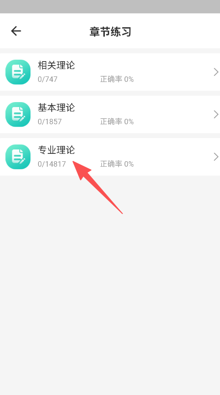2、在章节练习页面,选定专业理论等章节。