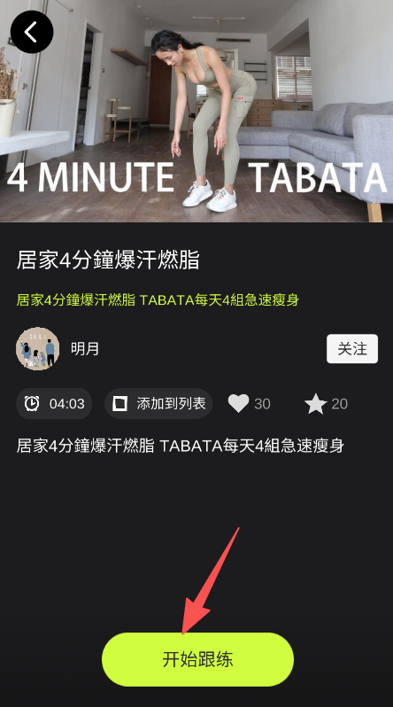 3、配备开始跟练功能按钮,在视频详情页点击后,即可开展对应的舞蹈或健身练习。