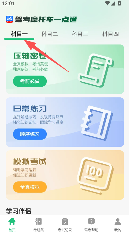 1、打开《驾考摩托车一点通》首页,选择对应科目板块。