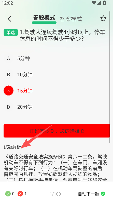 3、答题后同步呈现试题解析,依据相关法规说明要点,强化对驾考知识的理解程度。