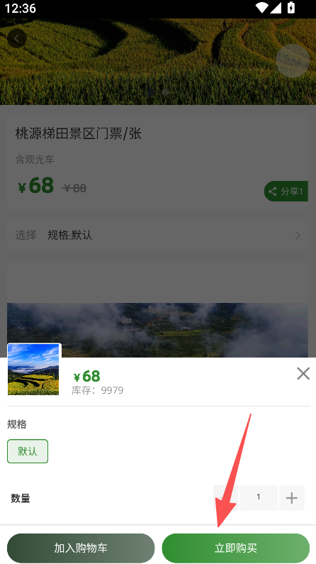3、购买流程简洁便捷,选择数量后即可点击立即购买,提升本地旅游商品消费的操作效率。