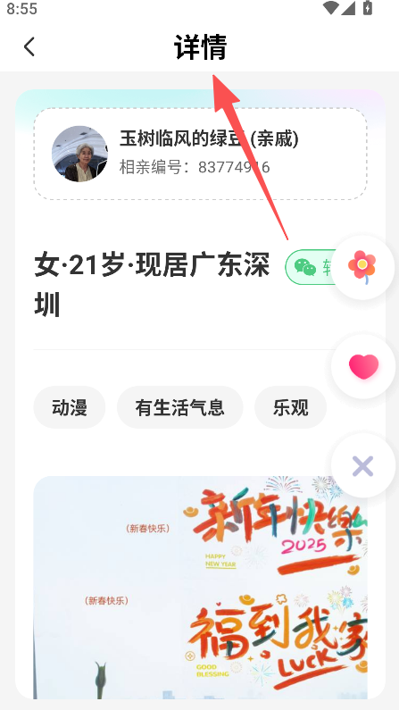 3、功能衔接顺畅,从看资料到浏览详情再到互动,操作流程简洁,适配相亲交友的使用节奏。