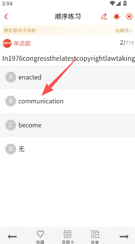 2、进入顺序练习界面,选择对应选项完成题目作答操作。