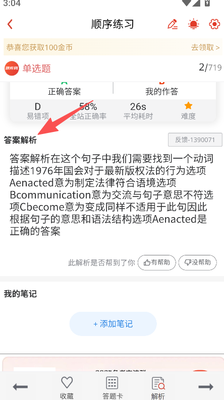 3、作答后查看正确答案,阅读答案解析掌握题目考点。