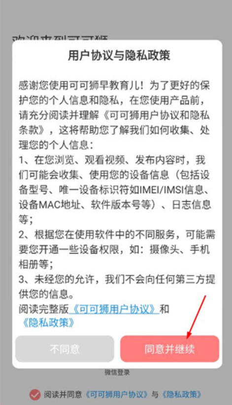 1、在仔细阅读相关内容后,需点击底部的“同意并继续”按钮,方可正式进入应用主流程。