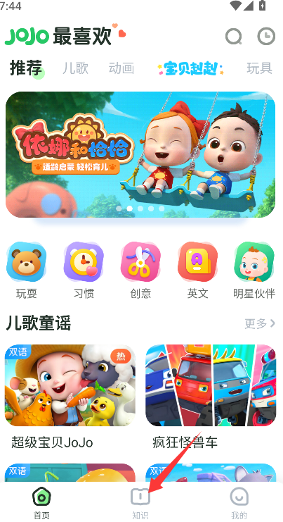 1、打开应用进入主界面后,找到并点击名为“知识”以进入软件的知识内容主库。
