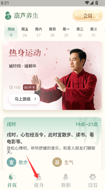 1、在屏幕底部的导航栏中找到并点击“健身”或带有相关图标的选项。