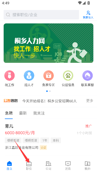 1、点击首页底部“职位”就像推开桐乡人才集市的大门,眼前岗位多得像小馄饨摊般密密麻麻铺开。