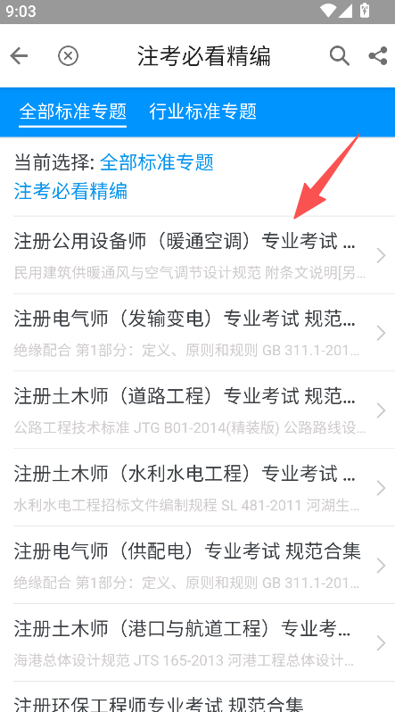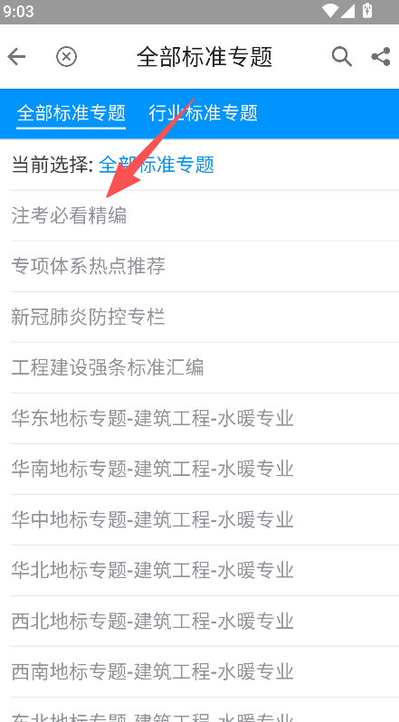 2、支持板块切换功能,进入全部标准专题页面,选择注考必看精编查看相关资料。
