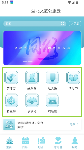 2、中间的“学才艺”“品资源”等板块,活像个数字文化百宝箱,轻轻一点就能解锁荆楚大地的缤纷技能与风物。