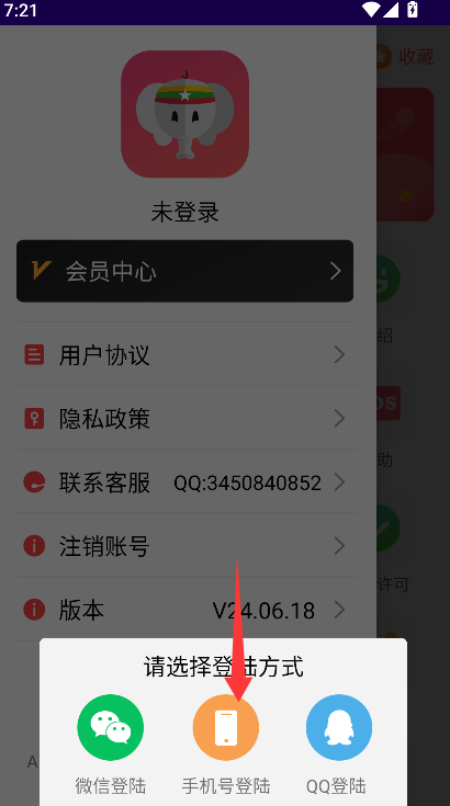 3、从列举的选项中准确点击“手机号登录”这一项,页面将随即跳转至要求输入手机号码及验证信息的专用登录界面。