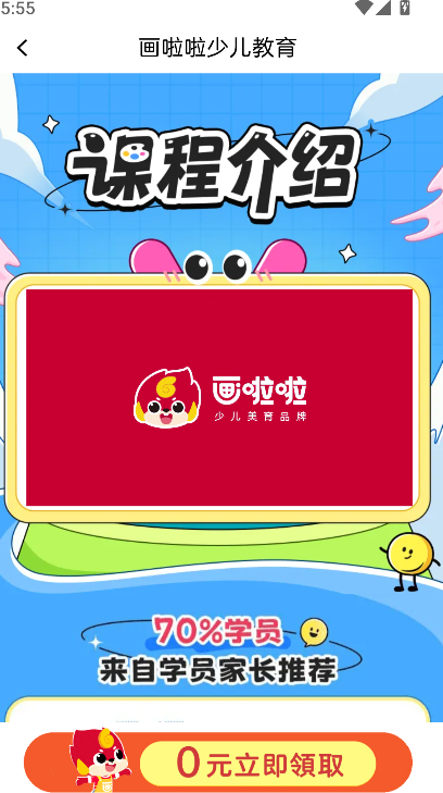 画啦啦少儿美术是一个在线美术启蒙平台,致力于儿童创造力开发。该平台以系列化互动视频课程为核心,将美术知识、绘画技法与创意启发相结合,在家庭环境中构建艺术学习空间。使用流程围绕课程展开。进入应用后,可根据年龄或主题选择相应课程。