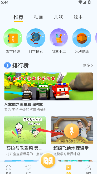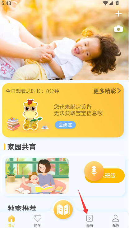 1、找到并点击进入“动画”功能专区,该专区集合了所有可供观看的儿童动画内容。