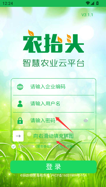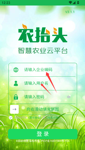 1、郑重填上企业编码与用户名,如同递交进入数字农场控制中心的专属接头暗号。