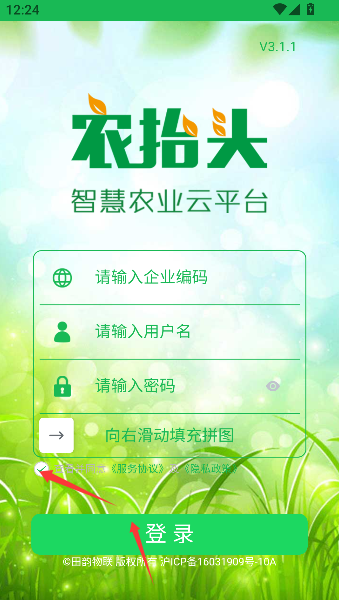 3、快速勾选那份长长的服务协议,然后怀着使命感点击登录,正式启动你的云端农田。