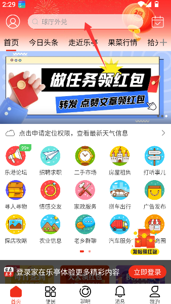 1、首页顶部的放大镜,像一位社区万事通,直接输入关键词就能快速打听到周围的一切新鲜事。