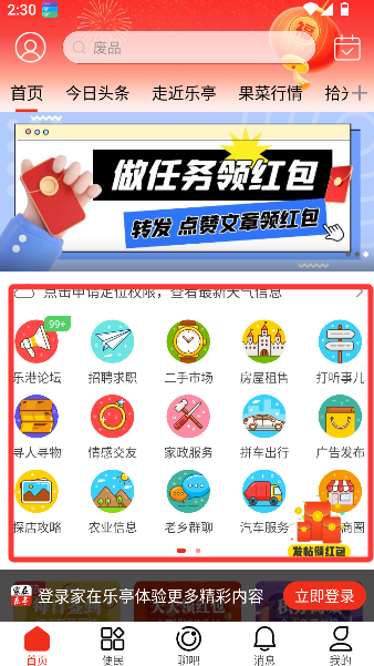 3、首页底部的便民与消息板块,就像贴心的社区工具箱和专属信箱,装着各种实用信息和悄悄话。
